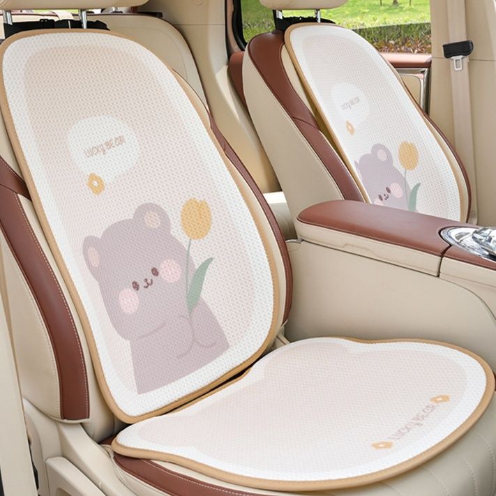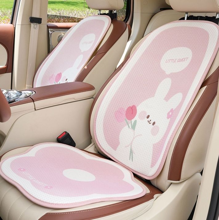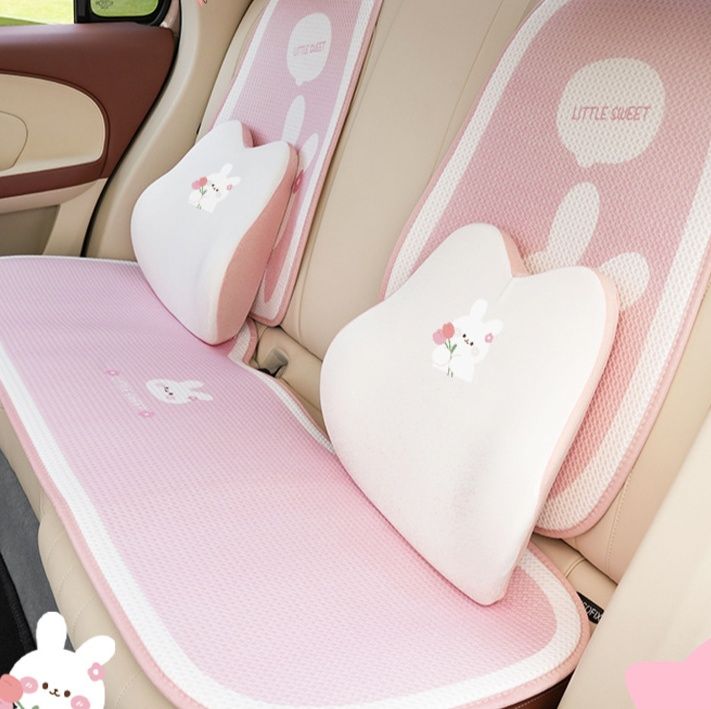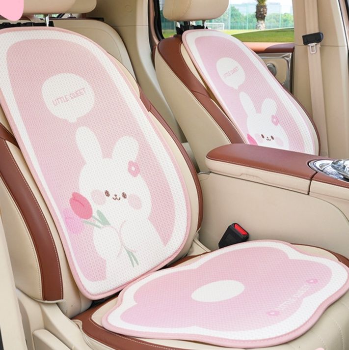 愛らしいうさぎとお花のデザインが魅力的な車シートカバーです。