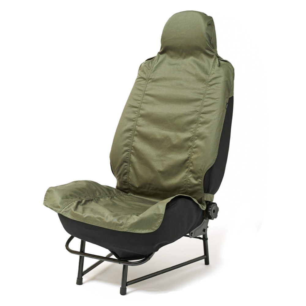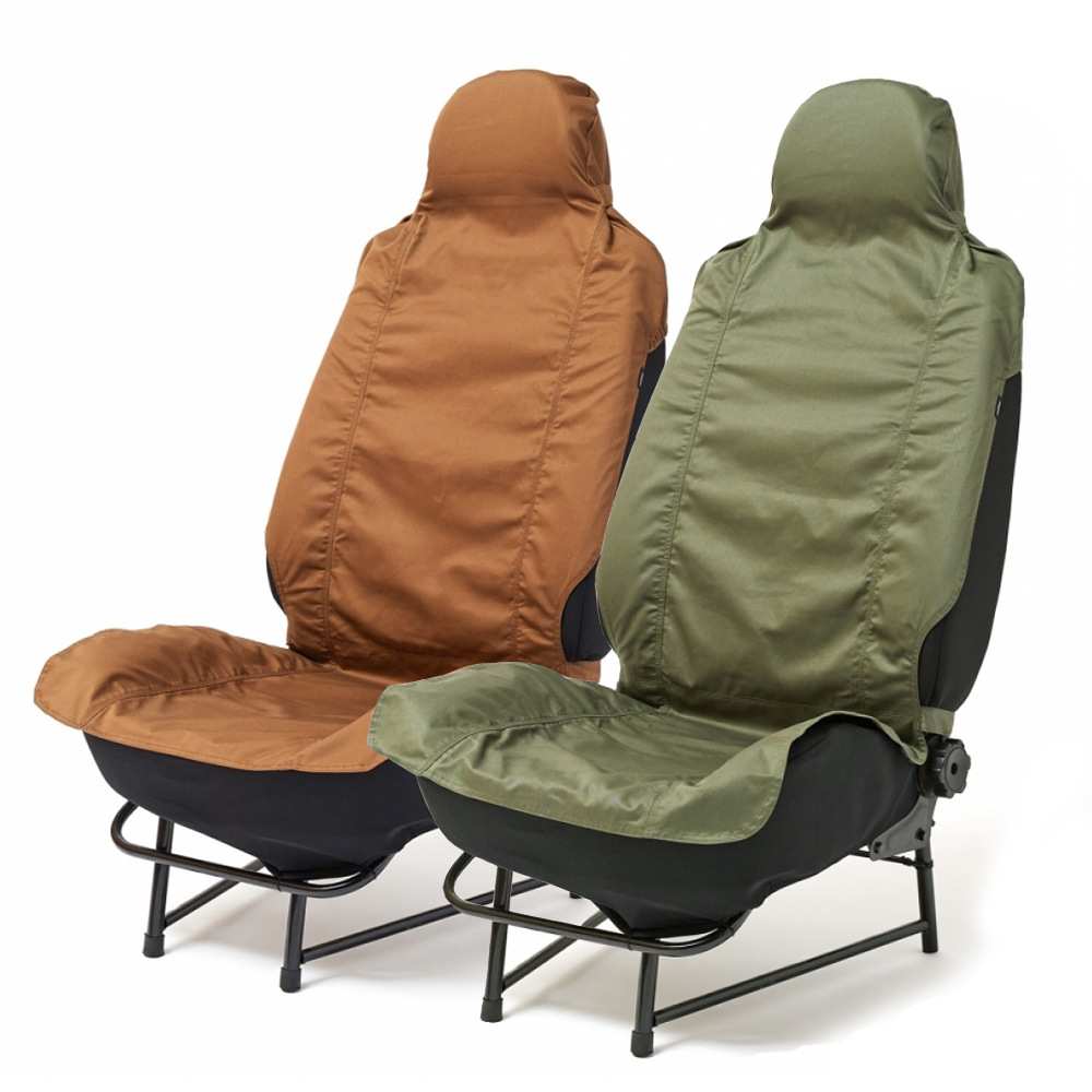 ヘッドレストまで完全に包み込む一体型設計の車シートカバーです。