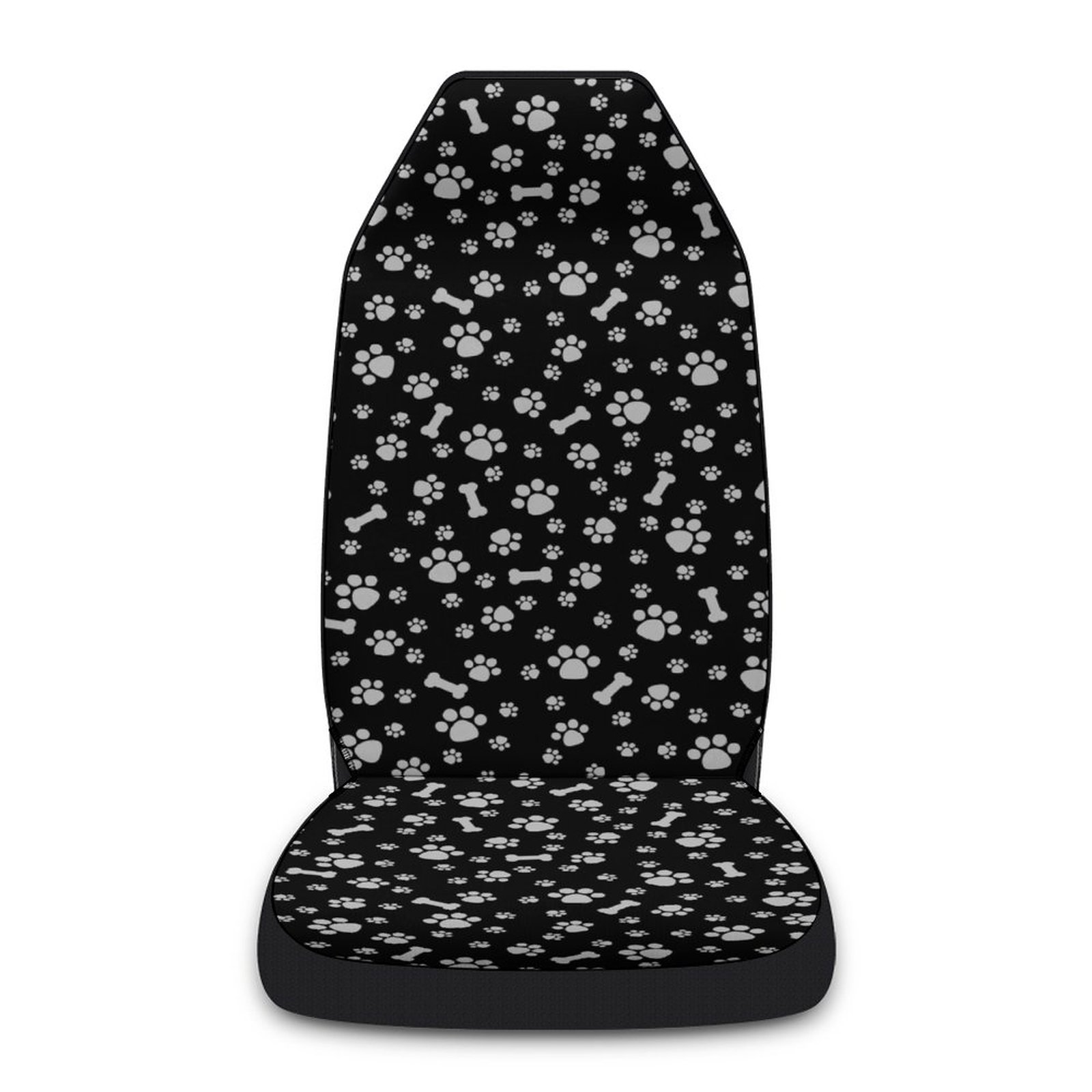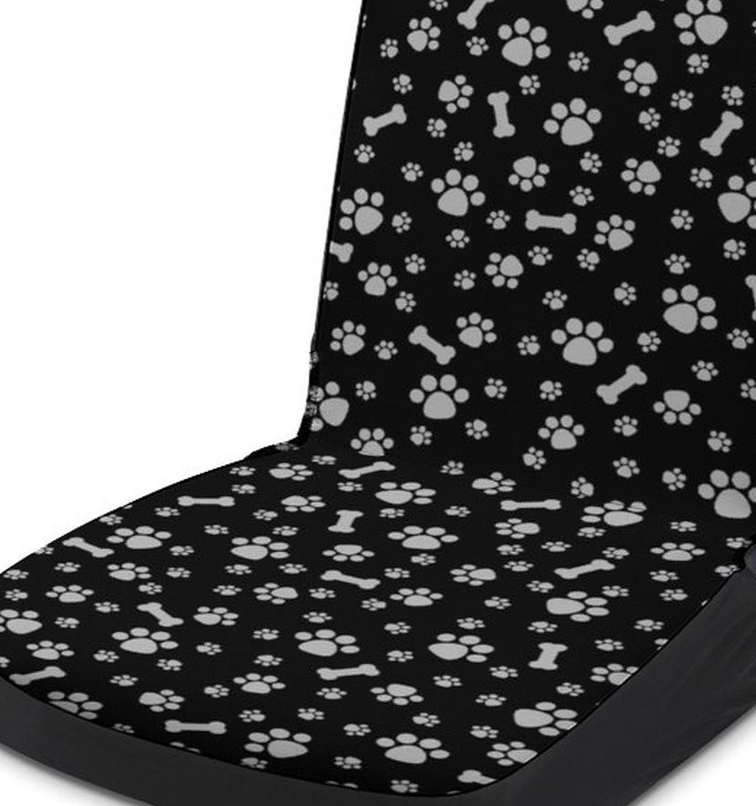 運転席用に設計されており、犬の足跡と骨のモチーフが全面に散りばめられた楽しいデザインが特徴です。