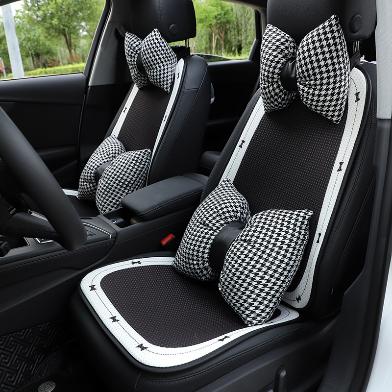 千鳥格子のデザインクッションが付いた高級感あふれる車シートカバーです。