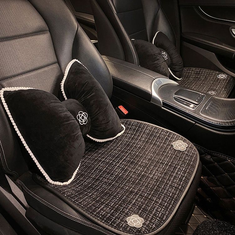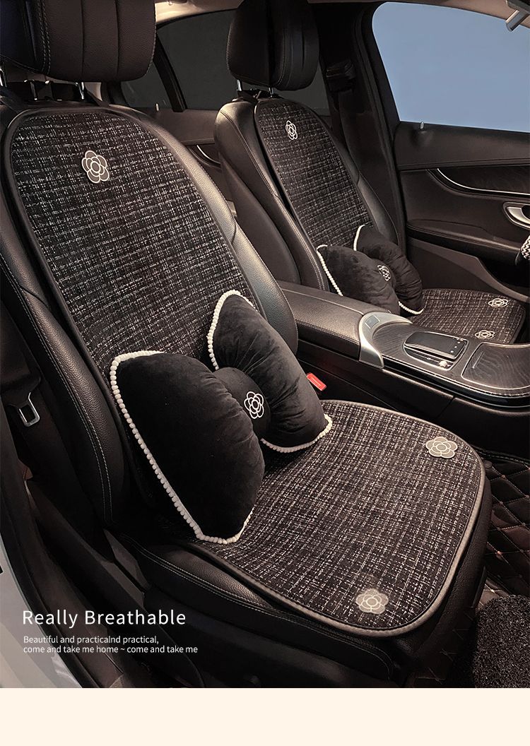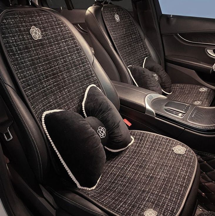 上品な花のワンポイント刺繍が車内空間を華やかに演出し、取り付けも簡単で日常使いに最適な一品です。